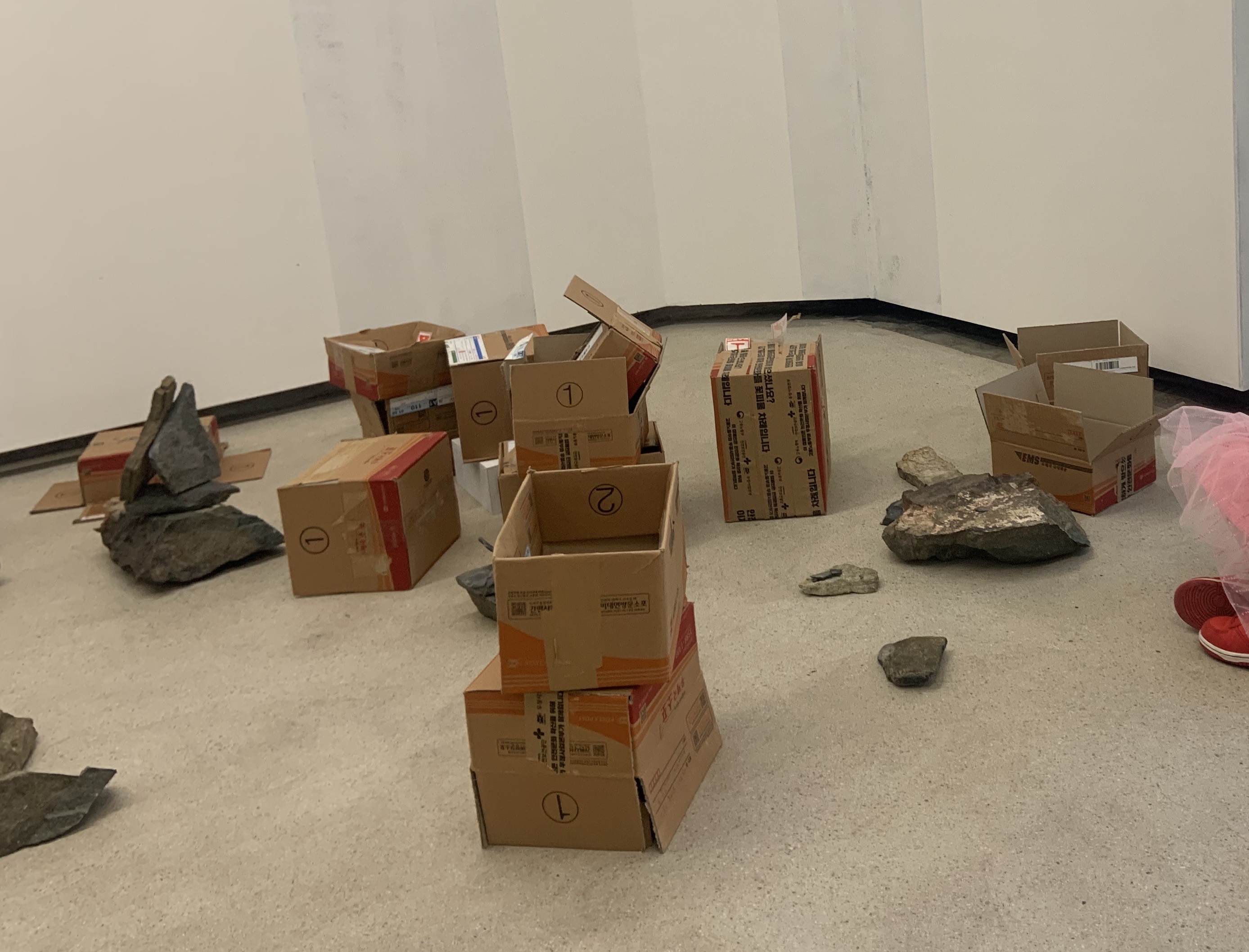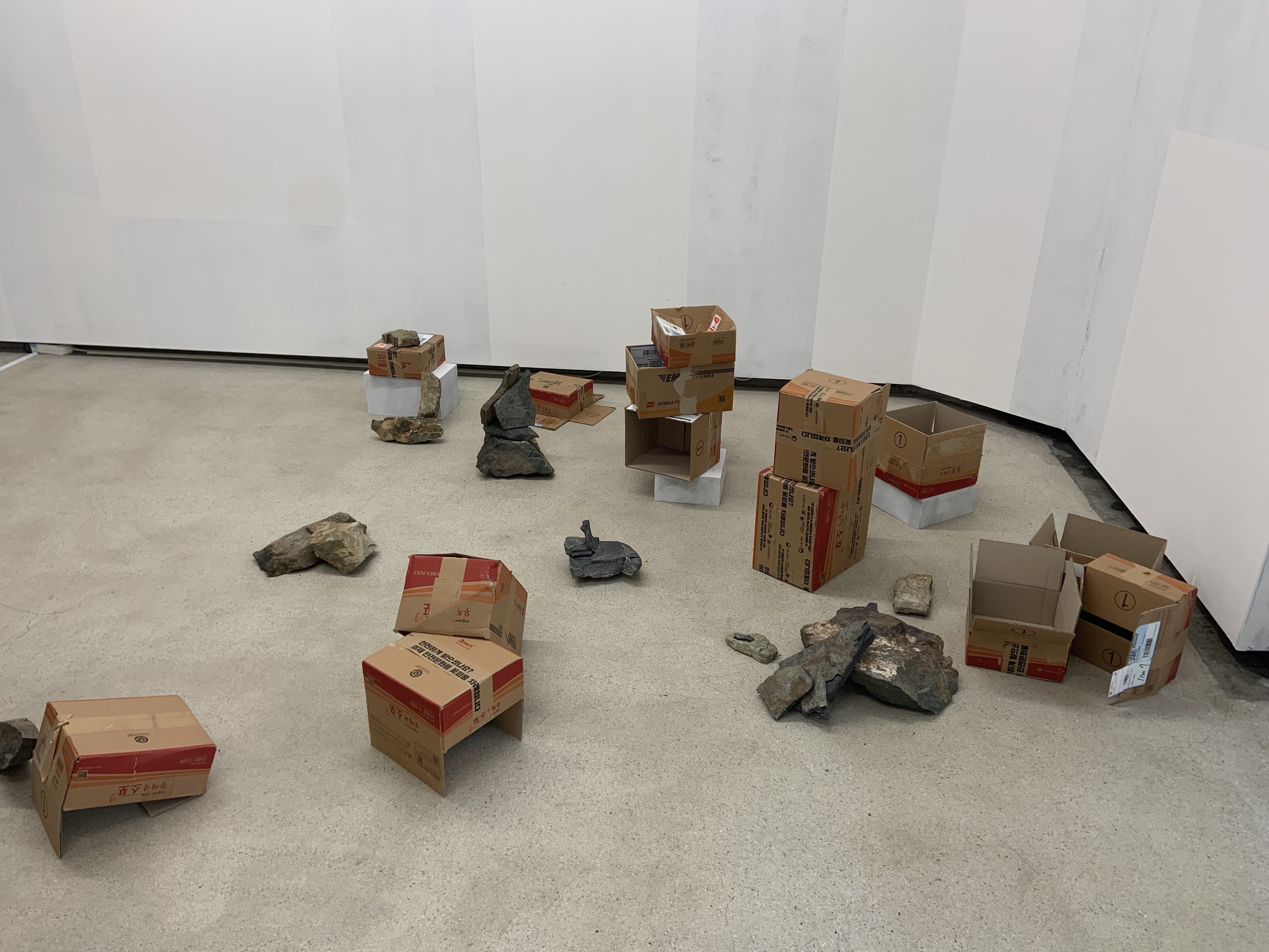 <퇴적>, 2024, 택배 박스, 퇴적암, 가변크기