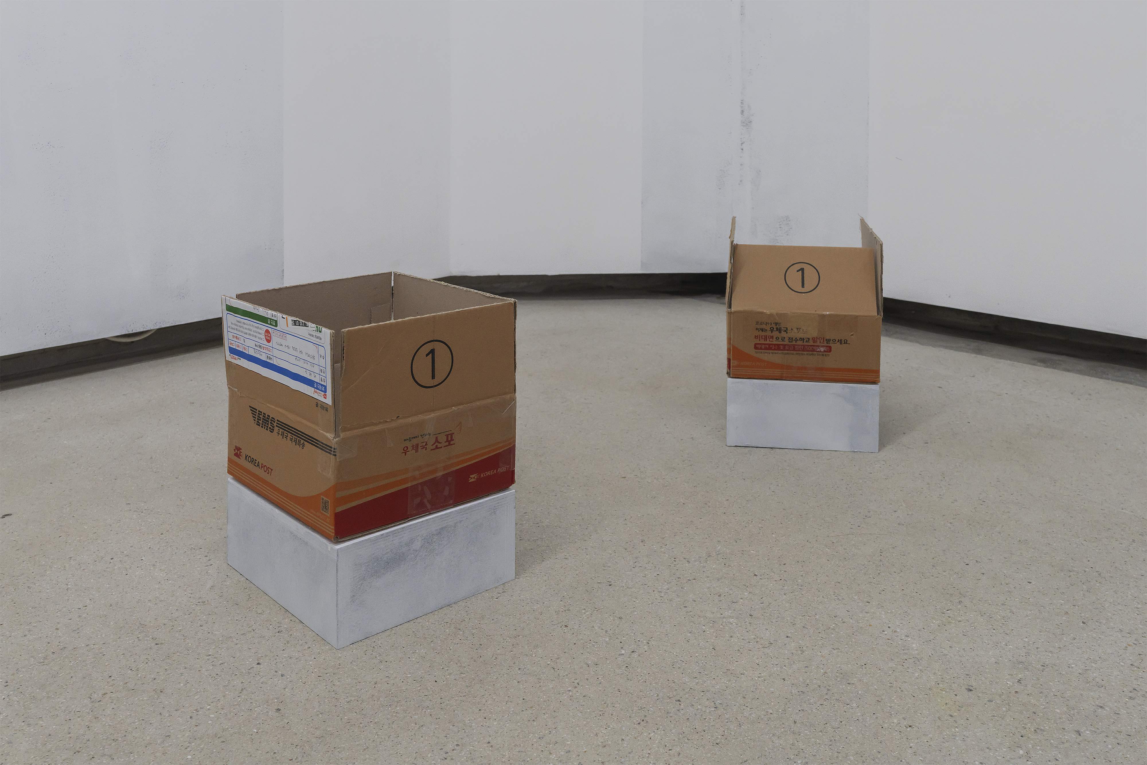 택배를 통해 전달되는 물건들은 퇴적암 및 화산암류, 공룡발자국 발견 지역에서 채취한 것들 입니다. 발송지는 퇴적암을 채취한 곳의 주소이며, 수신지는 전시장으로서 우체부 아저씨님의 퍼포먼스(행위)로 전시장에 도착합니다. 택배는 전시 기간 중 매일 하나씩 도착합니다. 전시장 입구에서 택배를 발견하신다면 자유롭게 전시장 안으로 가지고 들어온 후 개봉, 위치시켜 주세요.