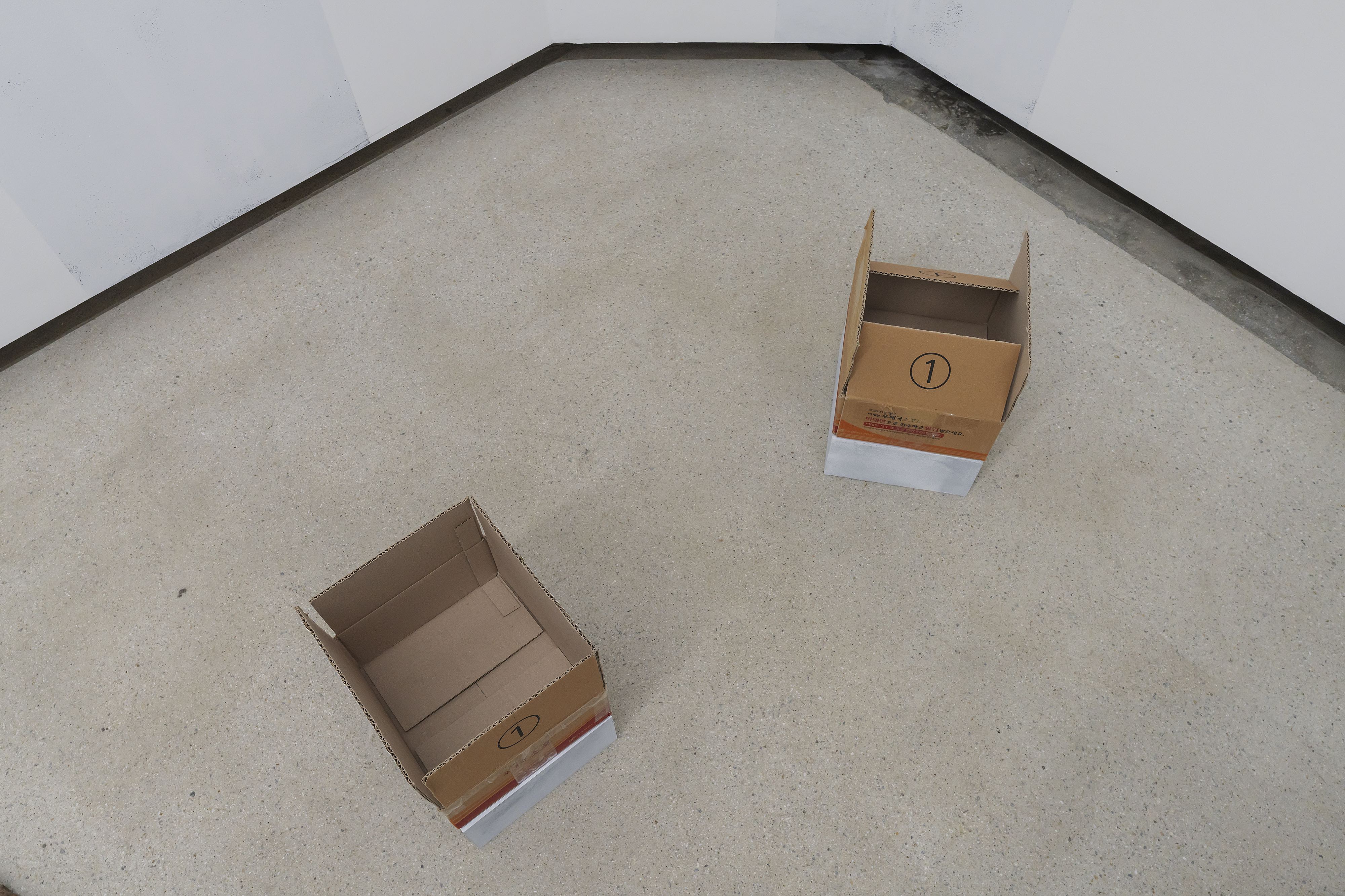 This work consists of objects delivered to the exhibition space via delivery, emphasizing the mobility inherent in the artwork. The parcels contain items sourced from sites where sedimentary and volcanic rocks, along with dinosaur footprints, have been identified. The sender's address corresponds to the location where the objects originated, while the recipient's address is the exhibition venue. The parcel arrives everyday. If you find a parcel at the exhibition entrance, please feel free to bring it inside, open it, and place it in the exhibition space.